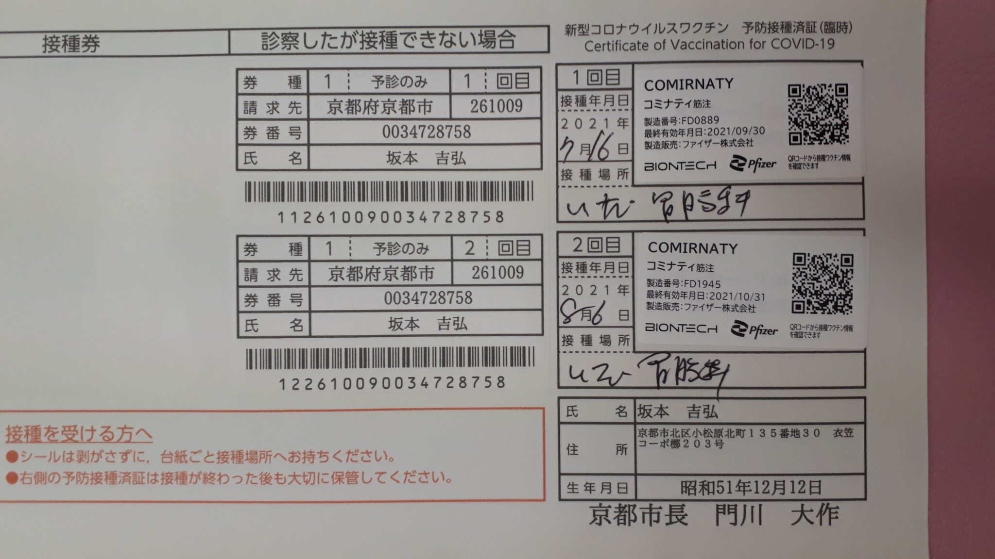 八月六日に二回目のワクチン接種をしました。 体内に抗体がみなぎっている様な気がします。 気のせいですね。